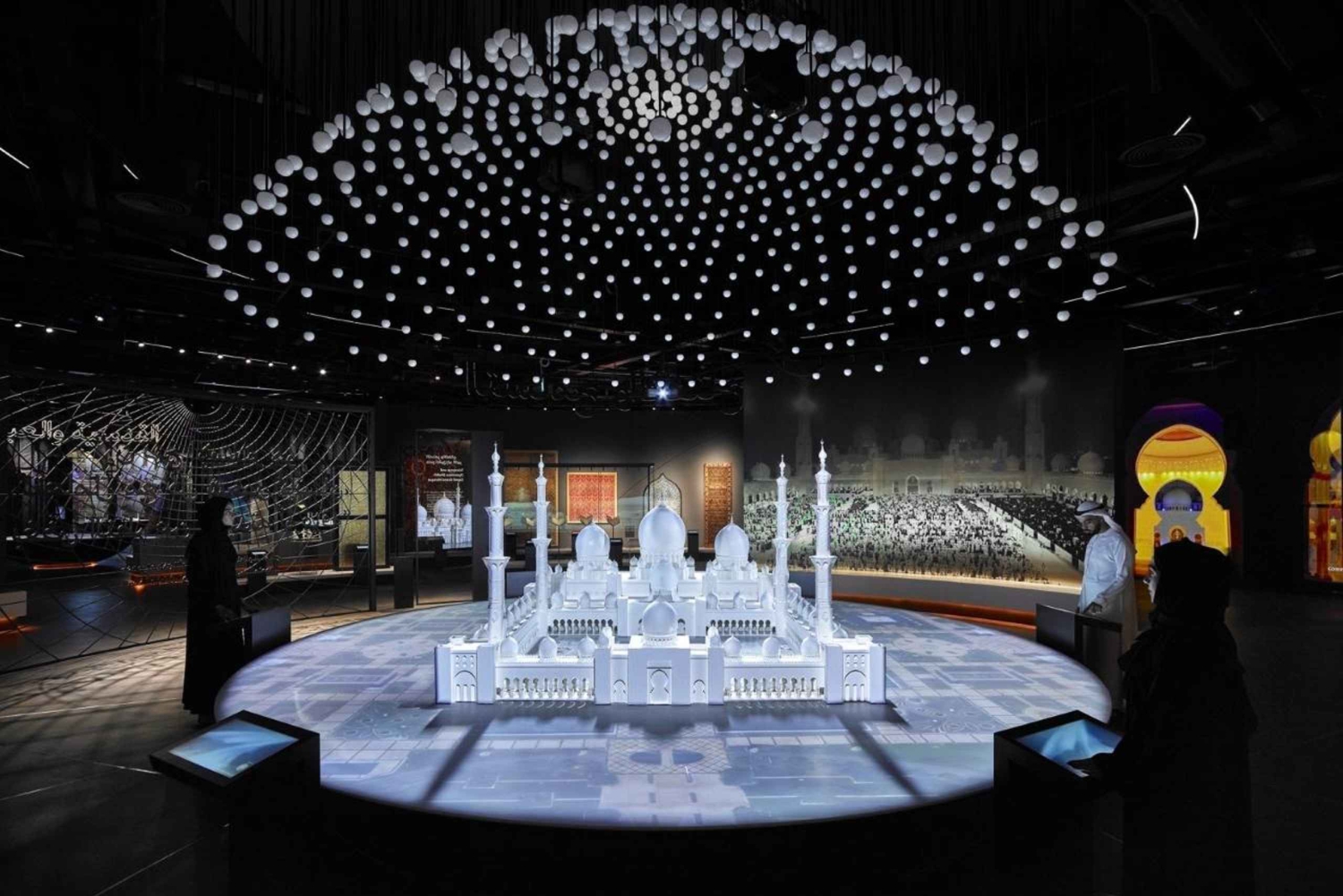 Afhentning og afsætning ved dit hotel i Dubai Certificeret professionel turguide Entrébilletter til Sheikh Zayed Grand Mosque Besøg på Light & Peace Museum Koldt mineralvandImportant Information