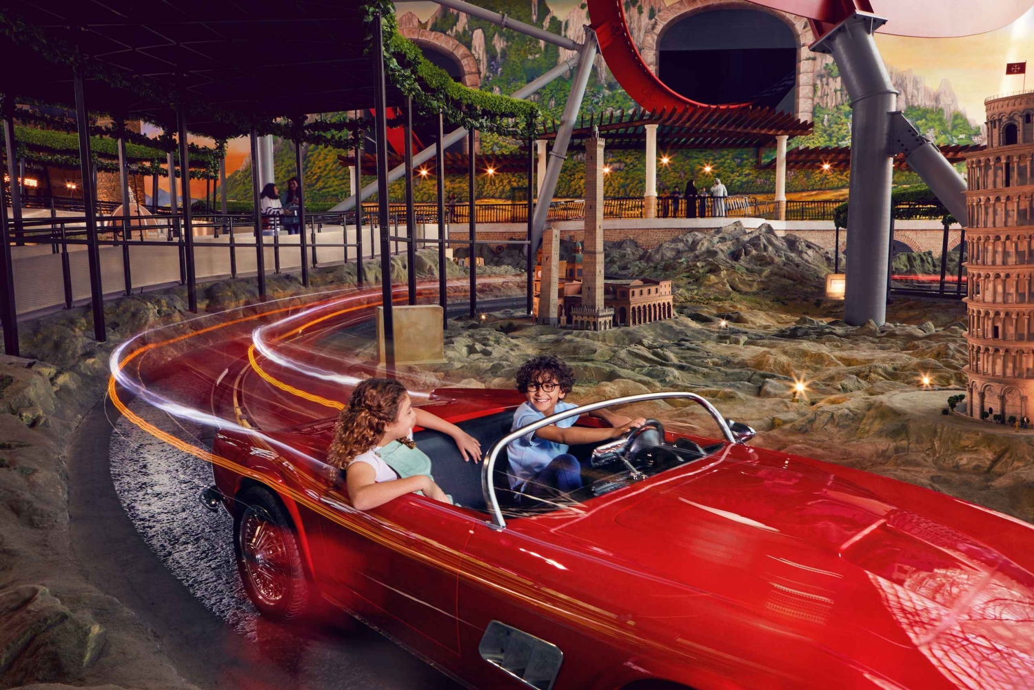 - Genieße die beeindruckendste multisensorische 5D-Mega-Achterbahn der Welt, Mission Ferrari