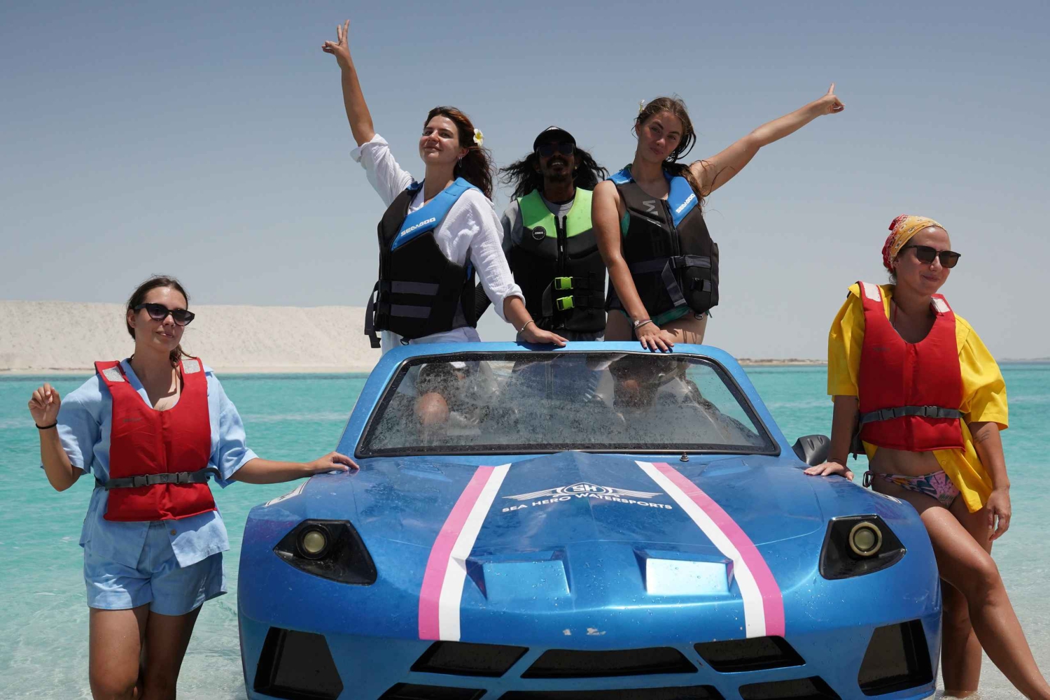 Vuokraa vesiskootteri Abu Dhabissa ja nauti aaltojen yli ajamisen jännityksestä. Suuntaa Bab Al Qasr -hotelliin, joka sijaitsee kaupungin sydämessä, ja valmistaudu unohtumattomaan seikkailuun. Saat turvallisuusohjeet kokeneilta ja sertifioiduilta oppailta. Voit tuntea olosi turvalliseksi, sillä varusteet ovat alan standardien mukaiset ja huolletaan huolellisesti. Pue pelastusliivi, hyppää vesiskootterille ja lähde vesille. Nauti henkeäsalpaavista näkymistä upealle rannikolle ja ikonisille maamerkeille, kun kiidät aaltojen yli. Halusitpa ajaa tunnin tai koko päivän, valitse joustavista varausvaihtoehdoista aikatauluusi sopiva. Saat sisäpiirin vinkkejä siitä, miten saat parhaan hyödyn vesiskootterikokemuksestasi Abu Dhabissa avuliaalta ja ystävälliseltä tiimiltä.Includes