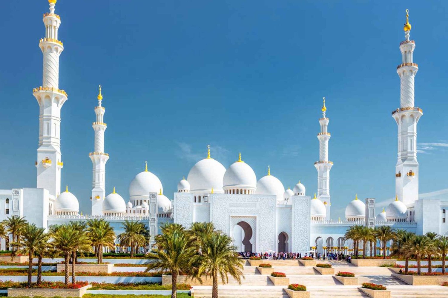 Ervaar de meest iconische bezienswaardigheden van Abu Dhabi tijdens deze exclusieve ochtendtour, perfect voor reizigers die zich willen onderdompelen in de cultuur zonder een dagvullende tour te hoeven ondergaan. Je eerste stop is Qasr Al Watan, het prachtige 'Paleis van de Natie' - een werkend presidentieel paleis dat zijn deuren opent om het hart van het Emirati-bestuur te onthullen. Verken op je eigen tempo de weelderige zalen die zijn versierd met prachtig Arabisch vakmanschap, kristallen kroonluchters en kostbare artefacten. Maak Instagram-waardige foto's terwijl je fascinerende inzichten krijgt in het politieke erfgoed en de visie voor de toekomst van de VAE. Ga verder naar de wereldberoemde Sheikh Zayed Grand Mosque, een architectonisch meesterwerk dat tot de grootste en mooiste moskeeën ter wereld behoort. Bewonder het ongerepte witte marmer, de ingewikkelde islamitische kunst en het grootste handgeknoopte tapijt ter wereld. Deze heilige plek verwelkomt bezoekers van alle achtergronden en biedt een unieke kans om meer te leren over de islamitische cultuur en de waarden van tolerantie en open dialoog van de VAE. Geniet tijdens uw reis van gratis mineraalwater en vervoer met airconditioning. Dankzij deze zorgvuldig geplande ochtendervaring kunt u de drukte en de intense hitte van de middag vermijden en toch op tijd terug zijn in Dubai voor andere activiteiten.Includes