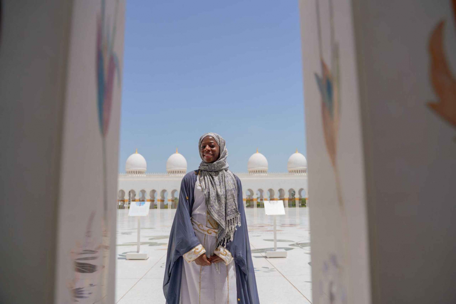 - As mulheres devem usar roupas compridas e largas para garantir que os braços, pernas, joelhos e cabeça estejam totalmente cobertos. Os homens também devem garantir que os ombros, pernas e joelhos estejam cobertos. As tatuagens devem ser cobertas durante a visita à mesquita. O não cumprimento desta regra resultará na recusa de entrada.