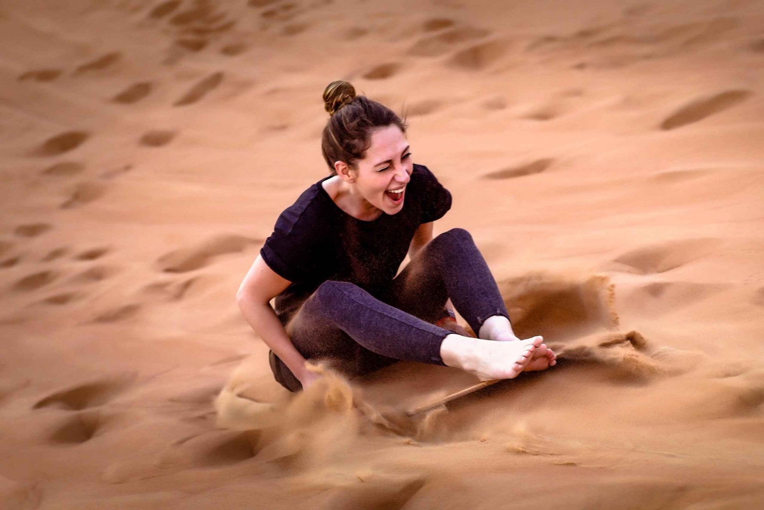 Затем примите участие в захватывающем опыте катания по дюнам. Почувствуйте, как у вас подпрыгивает живот, когда автомобиль движется вверх и вниз по крутым песчаным дюнам. Затем попробуйте свои силы в сэндборде, скатываясь по дюнам на доске.