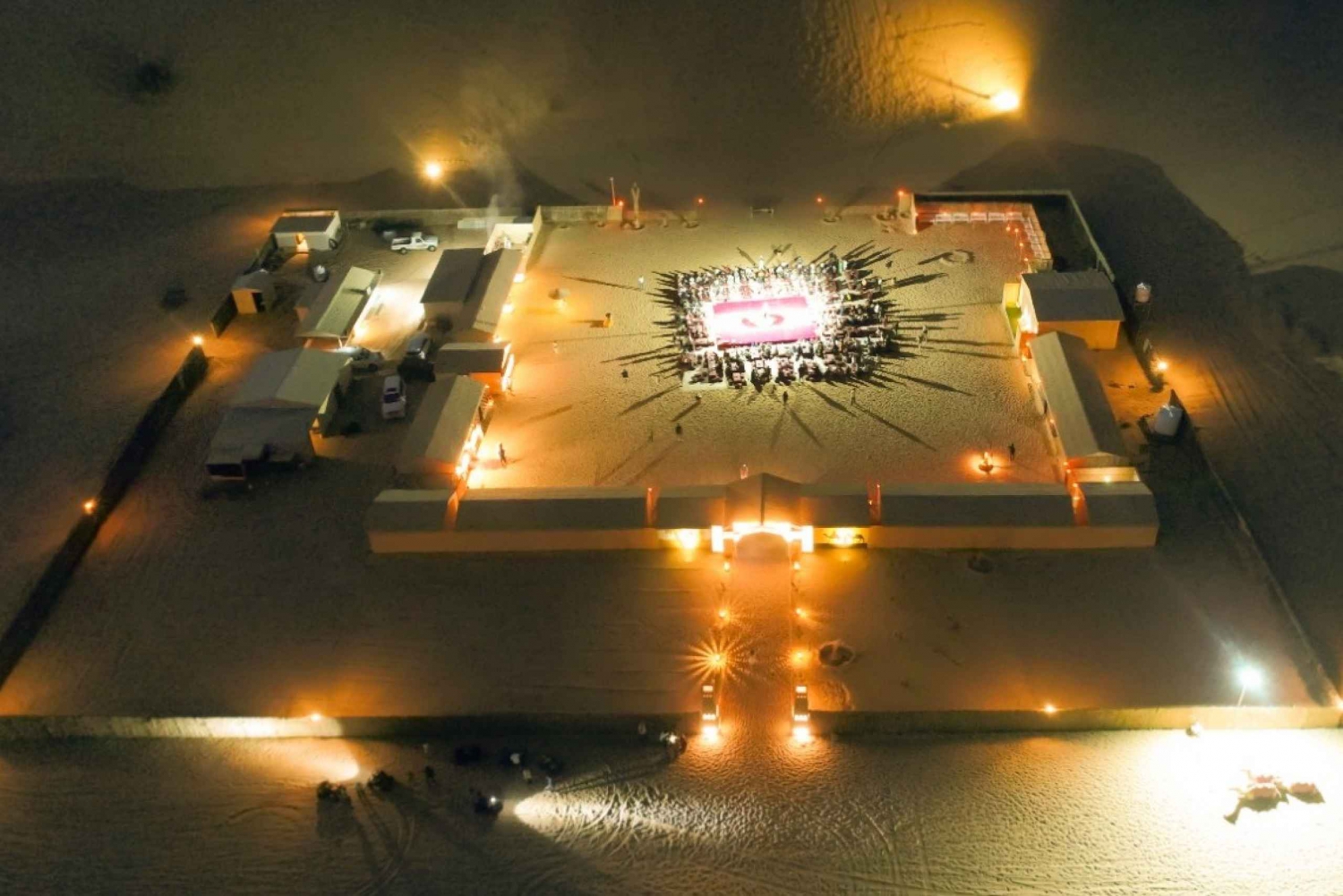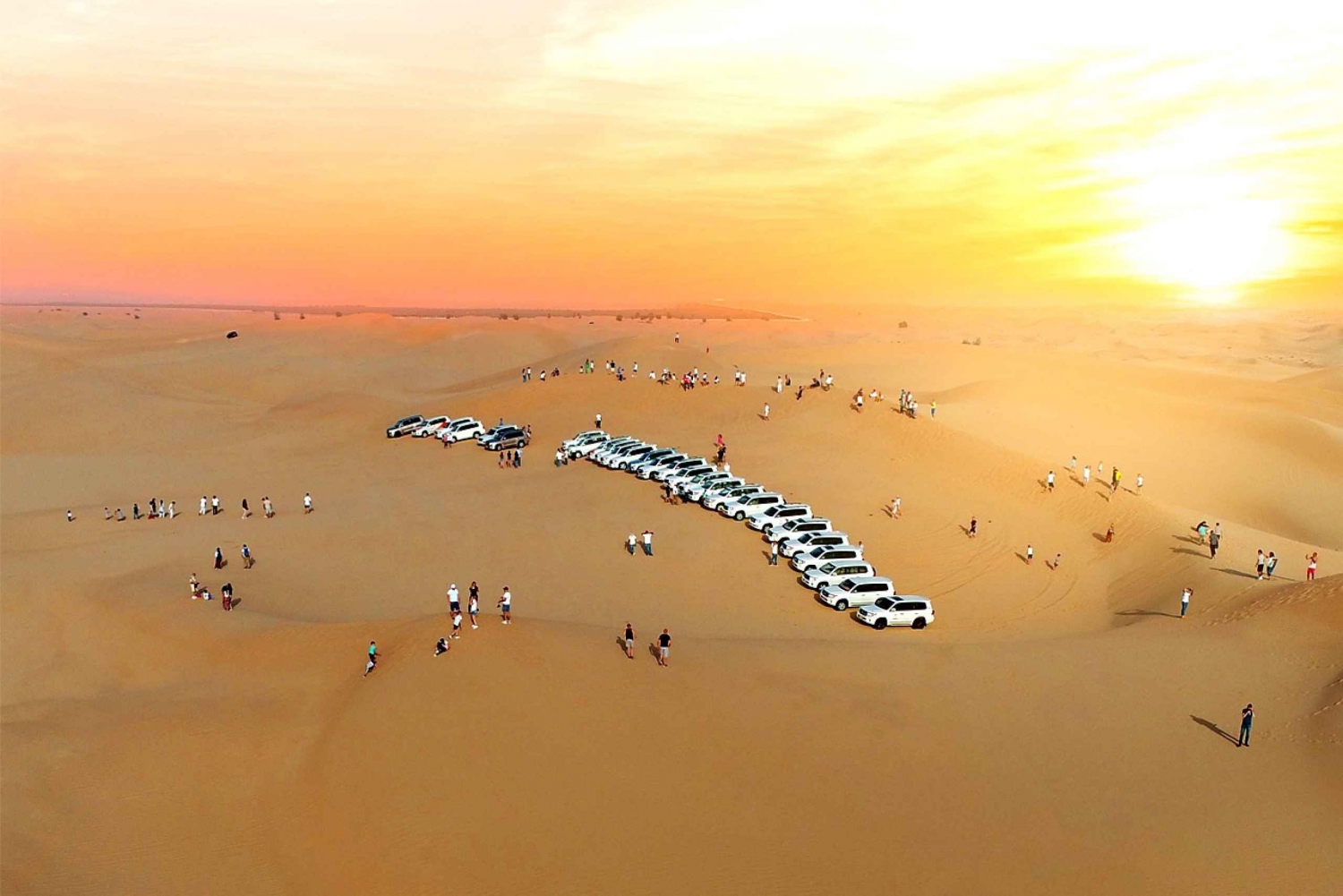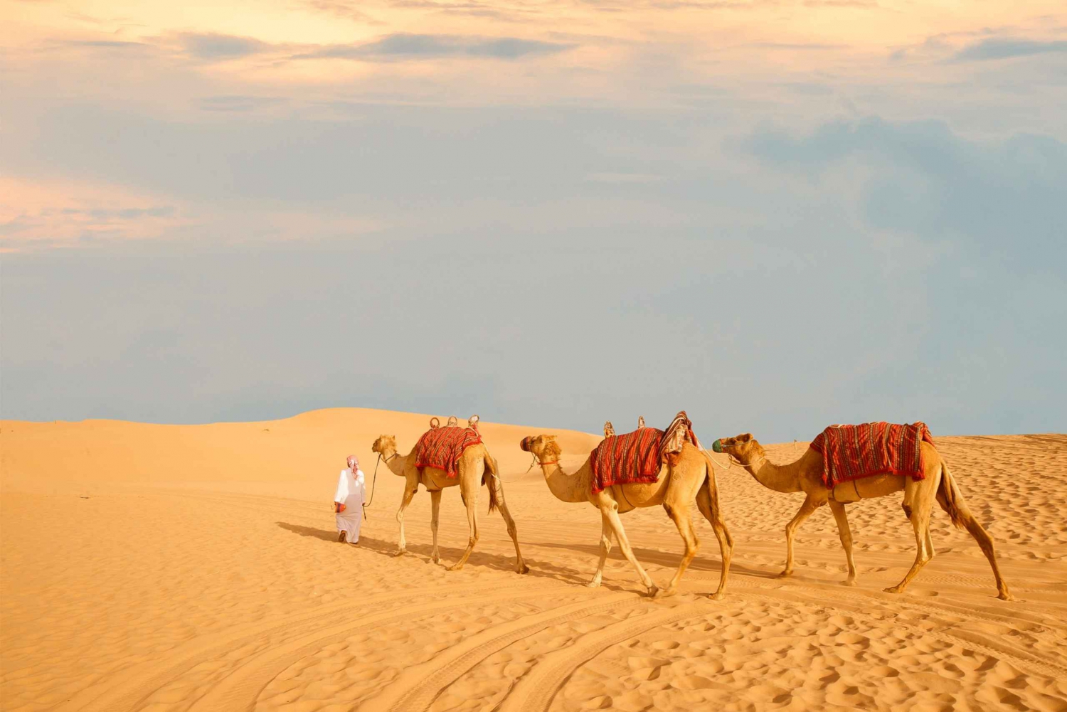 Примите участие в приключении в пустыне и отправьтесь в сафари по дюнам на внедорожнике. Посетите верблюжью ферму, посмотрите традиционный лагерь и насладитесь знаменитым арабским гостеприимством. Отправляйтесь из Абу-Даби и отправляйтесь в пустыню на окраине города, чтобы прибыть в лагерь в пустыне в Аль-Хатиме примерно через 45–60 минут. Совершите захватывающую поездку по песчаным дюнам на внедорожнике Toyota Land Cruiser с водителем, говорящим на нескольких языках, и остановитесь на верблюжьей ферме, чтобы перевести дух. Продолжайте путь в лагерь, чтобы воспользоваться множеством захватывающих занятий, включая возможность пересечь пески пустыни на квадроцикле (за свой счет), спуститься по дюнам на доске для сэндбординга или надеть традиционный арабский костюм для фотосессии. Попробуйте покататься на верблюде и ощутить исконный способ передвижения по пустыне. Посмотрите на исконный арабский лагерь и насладитесь знаменитым арабским гостеприимством. Выберите вечернее сафари по пустыне, чтобы полюбоваться великолепным закатом из пустыни и попробовать арабские сладости и бедуинский кофе. В вечерний тур включены ужин-барбекю и живое представление, а также вы можете сфотографироваться с соколом. Какой бы вариант вы ни выбрали, воспользуйтесь пакетом, специально рассчитанным для гостей, прибывающих на одном из следующих круизных лайнеров: • AIDAstella • Azamara Journey • Celebrity Constellation • Costa Fortuna • Costa neoRiviera • Crystal Esprit • NCL Norwegian Star • Oceana Nautica • Royal Caribbean Vision of the Seas • Seabourn Encore • Silversea Silver Cloud • Mein Schiff 3 TUI CruisesIncludes