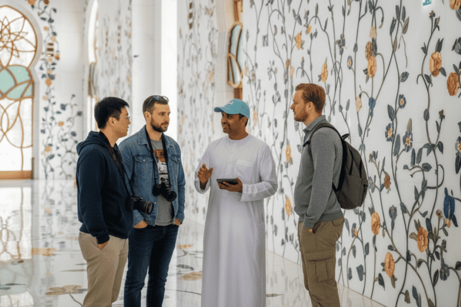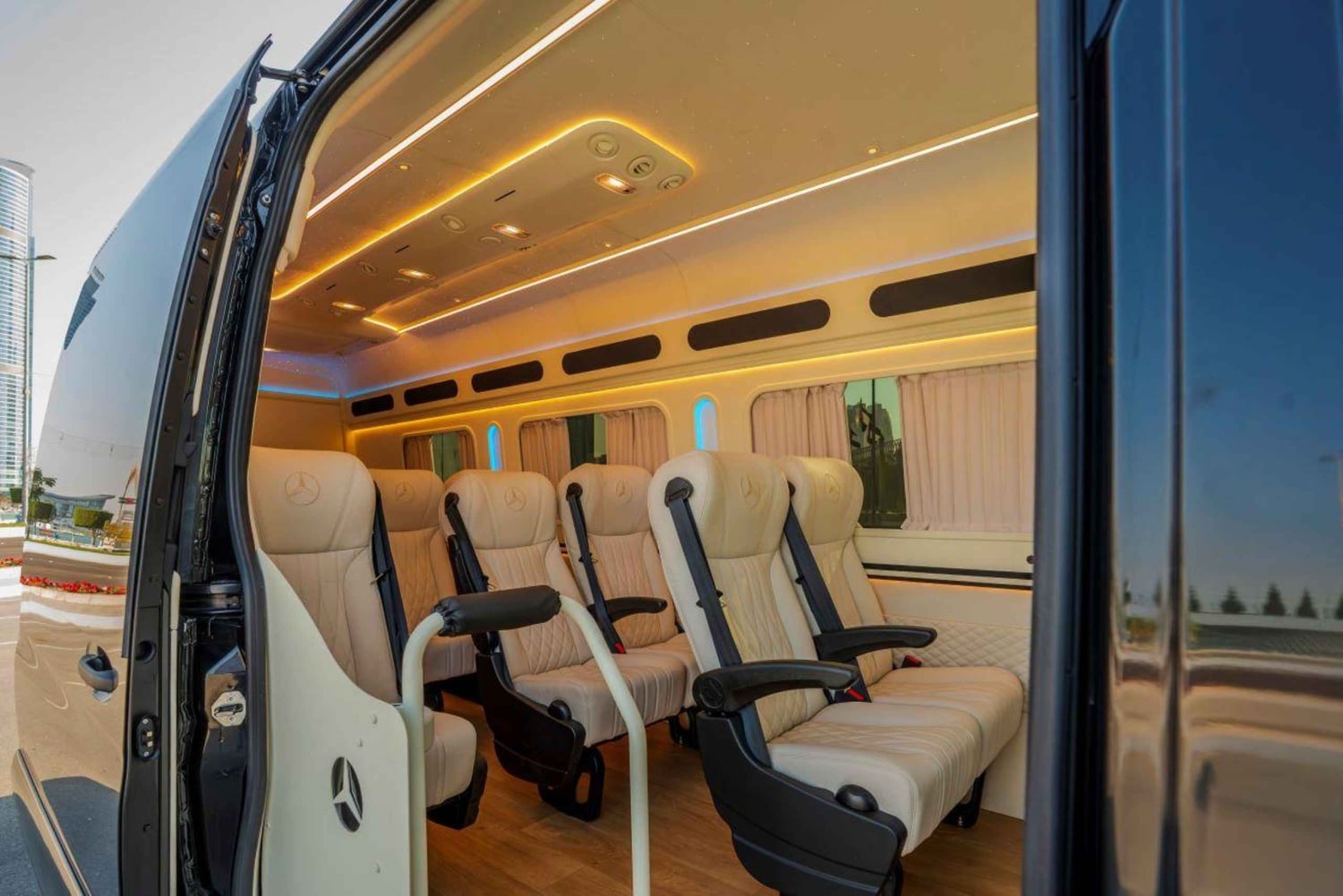 Experience Abu Dhabi in a small group on a full-day luxury Mercedes Sprinter tour from Dubai. After pickup, enjoy comfortable seating and a warm welcome from your guide, including traditional Arabian dates sourced from different countries, as you drive along the Arabian Gulf. During the journey, your guide shares insights into one of the world’s richest cities. Your first stop is the Sheikh Zayed Grand Mosque, the largest mosque in the UAE and the third largest in the world. Admire its Swarovski chandeliers, intricate designs, and the world’s largest hand-knotted carpet. Ladies will be provided with a special abaya to wear inside, and your guide will assist in capturing stunning photos. Free time is available for lunch (not included). Stop at the Corniche to enjoy beautiful views of the city skyline. Next, explore Qasr Al Watan, a working presidential palace and cultural landmark. Discover the country’s traditions, admire the impressive architecture, and explore the grand halls and exhibitions that reflect the UAE’s cultural vision. Finally, visit the Etihad Towers, an iconic architectural landmark on the Abu Dhabi Corniche offering dining, accommodation, and entertainment in one destination. Head up to the 74th floor for breathtaking 360-degree views of the city, including Emirates Palace and the Arabian Gulf. It is a view that will leave you speechless. After a full day of sightseeing, relax on the comfortable drive back to your Dubai hotel.Includes