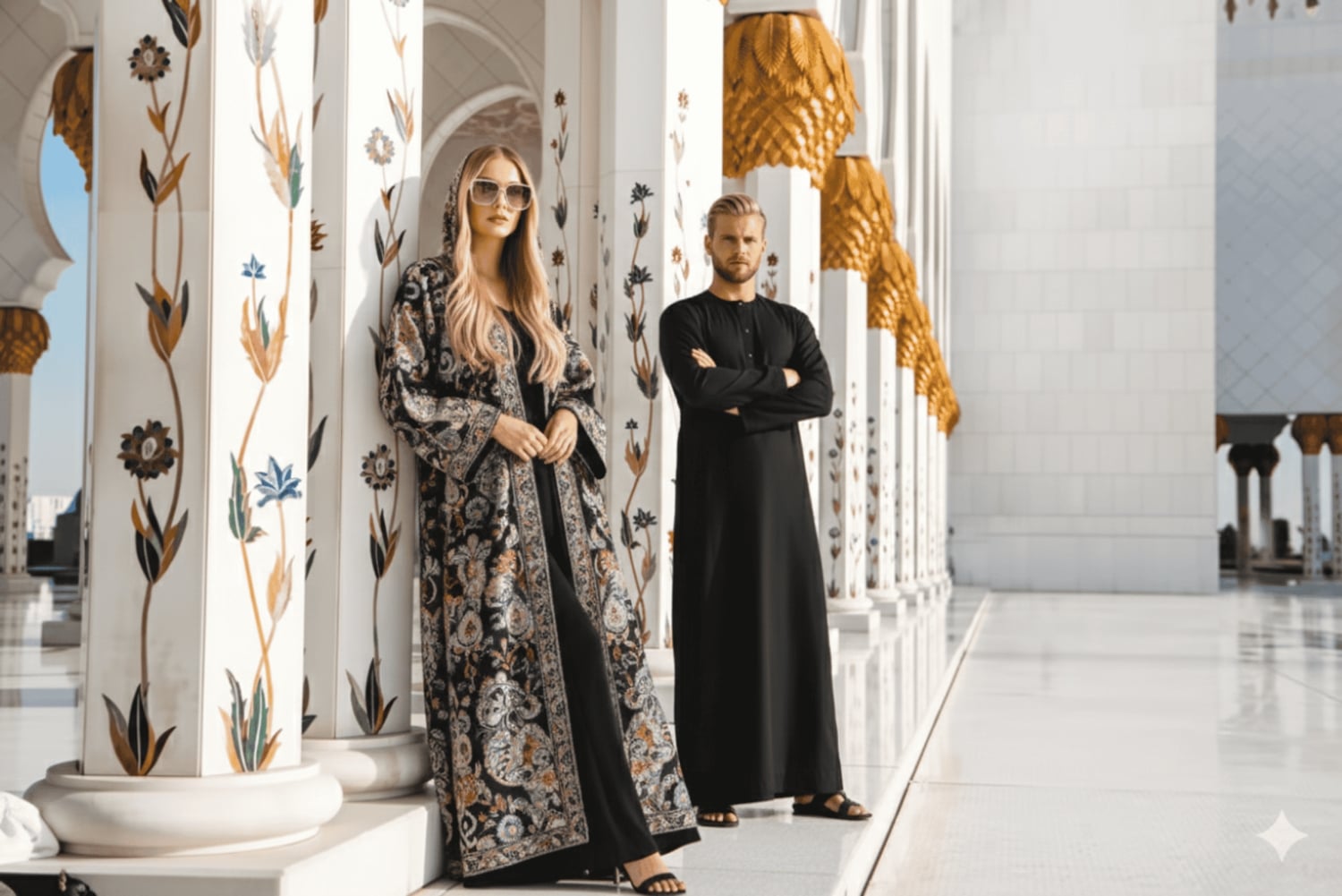 Discover Abu Dhabi’s top attractions on a luxury Mercedes tour from Dubai, featuring the Sheikh Zayed Grand Mosque with abaya for women, Qasr Al Watan Presidential Palace, and the Etihad Towers.